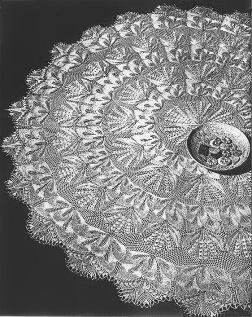 knit 3 together, pass 4 slipped stitches over." (2) For A Smaller Version of the Cloth: (Omits 2nd ring of flowers): Work to Round 201, omit Rounds 203-365, continue from Rounds 367-401.